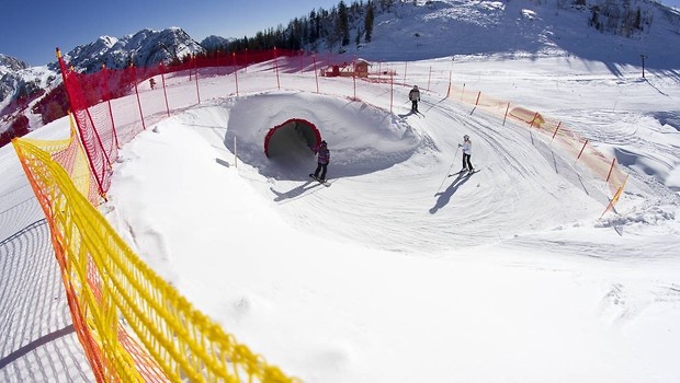 Kolejnym rejonem, który postawił na rodziny z dziećmi jest Karyntia a dokładniej ośrodek Nassfeld, który należy do 10 najlepszych stacji narciarskich w Austrii. Oprócz mnóstwa atrakcji na stokach w postaci specjalnych szkółek, przedszkoli dla najmłodszych oferuje coś specjalnego dla nieco starszych dzieci – mowa tu o funslope. Ta nietypowa trasa to połączenie zwykłego stoku, funparku i crossu, w skrócie 11 fal, 9 ostrych zakrętów i 2 uskoki – raj dla młodzieży. Dodatkowo w każdą niedzielę Shred School organizuje bezpłatne zajęcia freestylowe dla każdego.